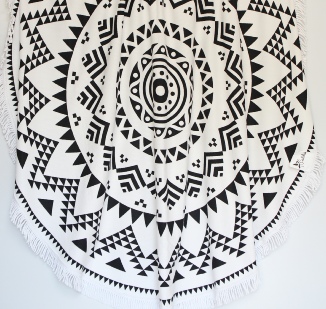 Beach towel round black & white persian